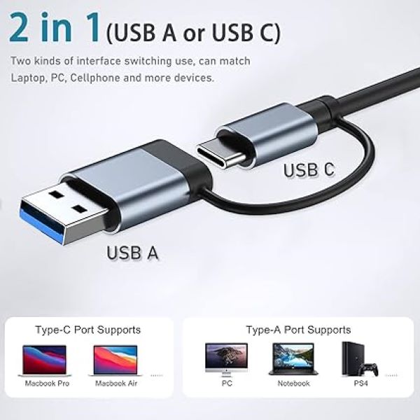 Supports 7 USB ports to work at the same time, which solves the problem of insufficient USB ports on your computer or notebook, and also avoid repeated plugging and unplugging,protect the computer’s native interfaces.