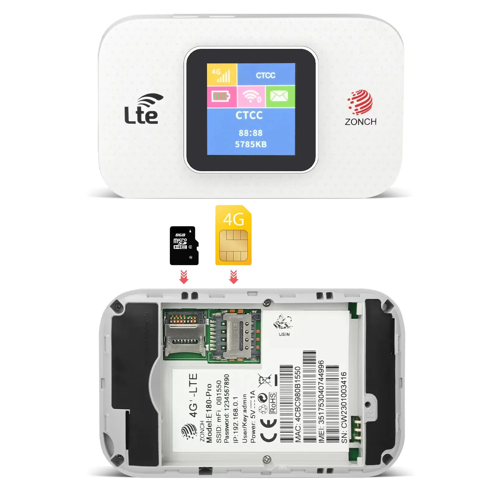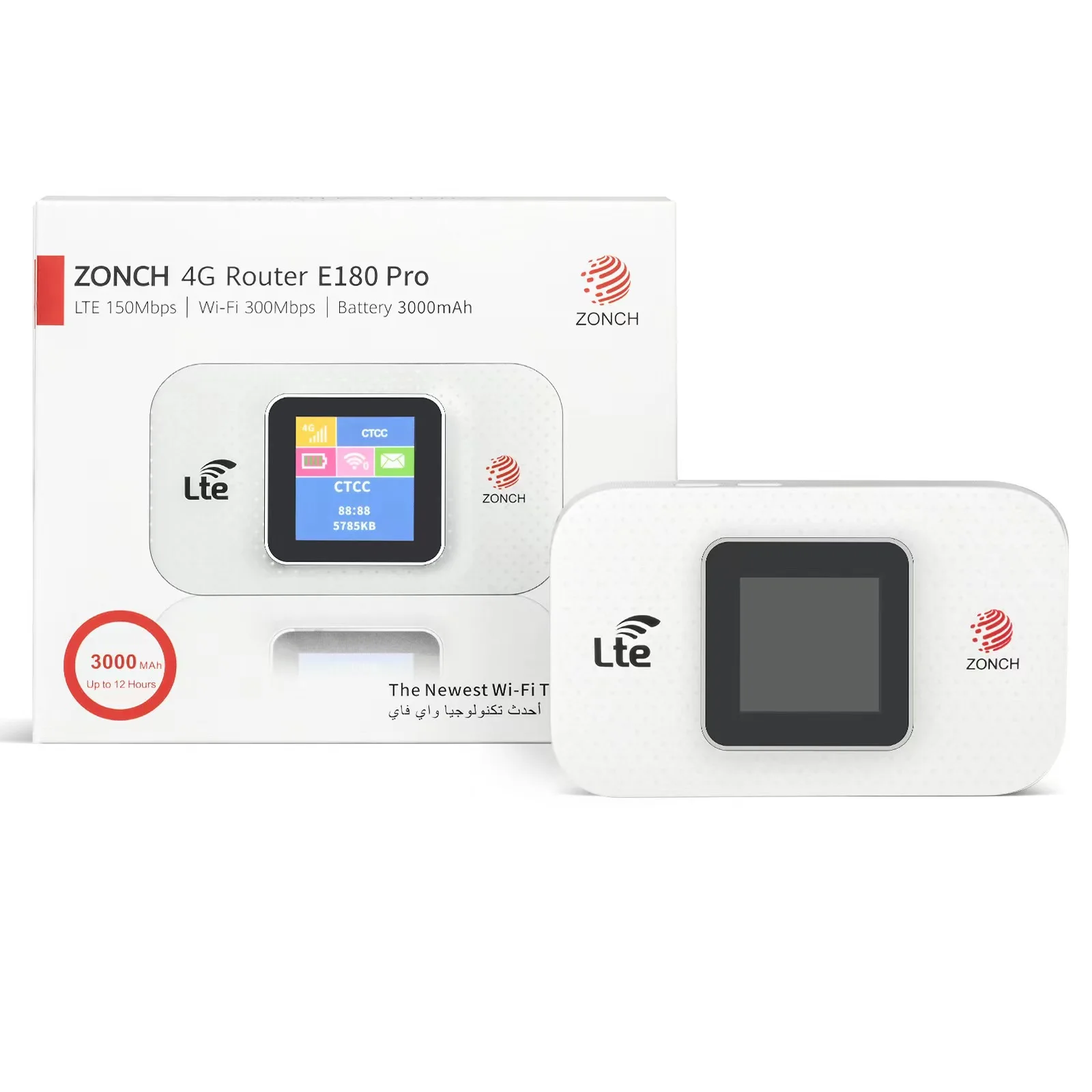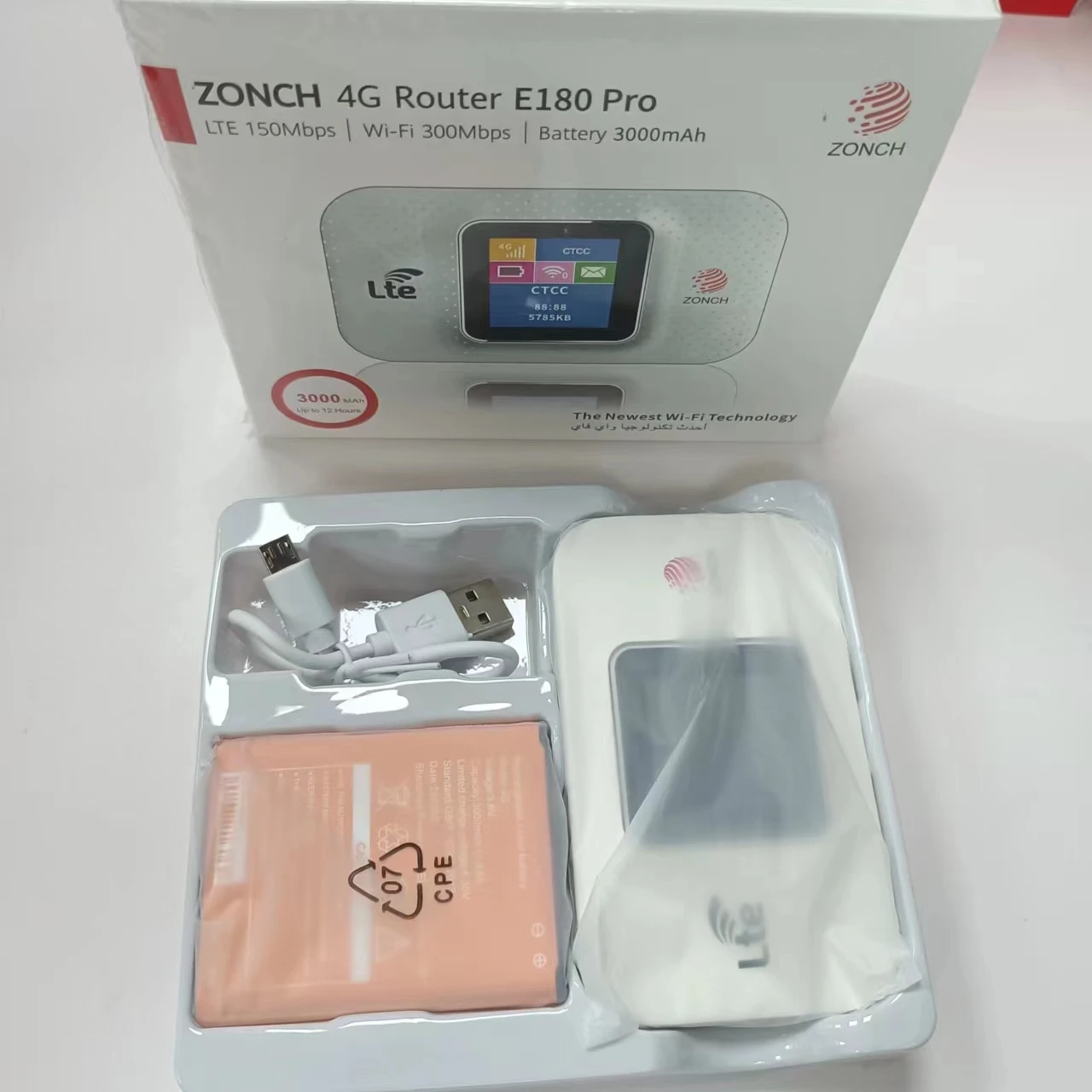 The E180 Pro ZONCH 4G Router offers a 2.4G Wi-Fi transmission rate of 150Mbps, supports WPS, WPA2-PSK encryption, and multiple functions including QoS, Firewall, VoIP, and VPN. Its compact size (10*6*0.15cm) and lightweight design (51g) make it ideal for outdoor use. The product also provides environmentally friendly and efficient packaging for safe delivery.